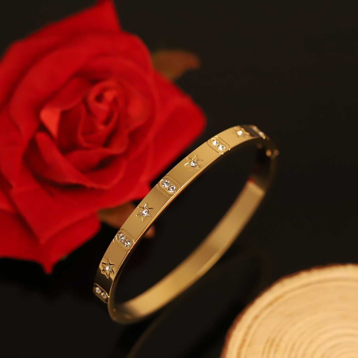 Celestial Sparkle” Star-Patterned Gold-Plated Bangle
