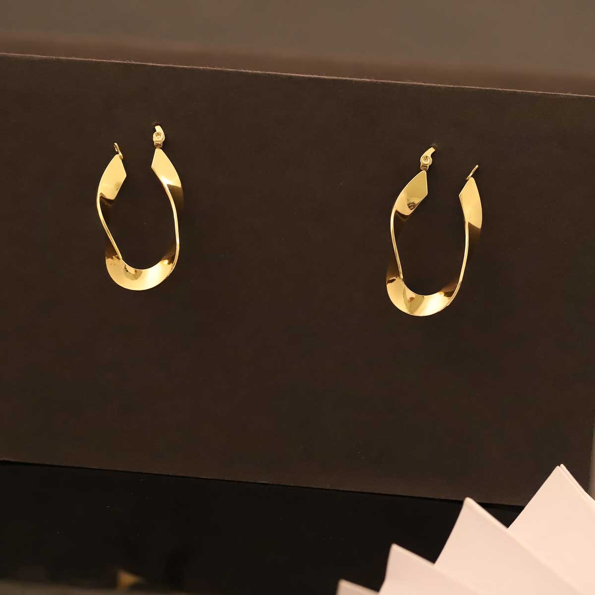 Embrace contemporary chic with our Modern Twisted Hoop Gold-Plated Earrings. These unique hoops feature a brilliant, polished gold-tone finish, designed with an artistic twist. The open-ended hoop creates an intriguing, sculptural shape that appears to gently curve and undulate, offering a fresh take on the classic hoop earring. Crafted from high-quality artificial materials, these lightweight earrings provide a comfortable fit and a luxurious look. They are perfect for adding a touch of modern artistry and sophisticated flair to your everyday style, making a subtle yet impactful statement.